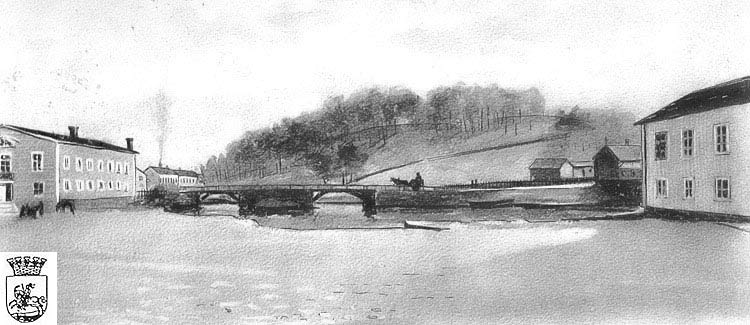 tillkommit. I bakgrunden skymtar Asphyttebron. Från Filipstads Gilles arkiv.