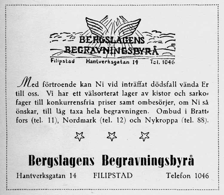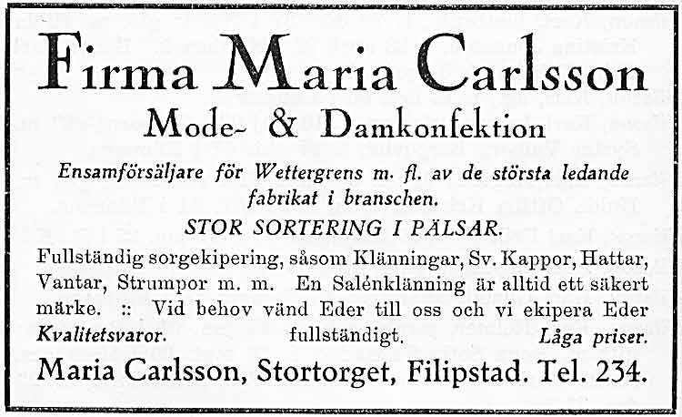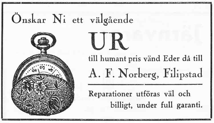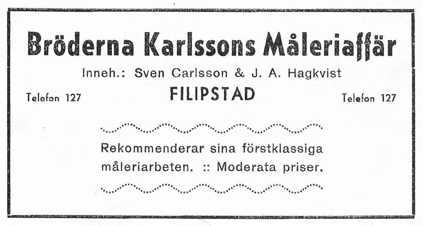 Så här kunde annonser från handlande och fabrikörer verksamma i Filipstad se ut.