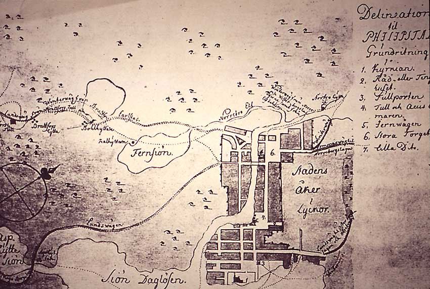 Filipstad troligen slutet 1600-tal eller tidigt 1700-tal. Från Filipstads Gilles arkiv.Filipstad troligen 1600-tal eller tidigt 1700-tal. Från Filipstads Gilles arkiv.Jonas Brolins stadskarta från 1770. Från Filipstads Gilles arkiv.Filipstad troligen mitten av 1800-tal. Från Filipstads Gilles arkiv.