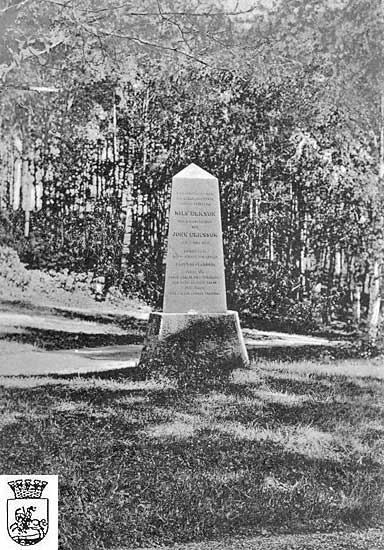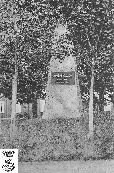 och John Ericsson hedras. Stenen står på vägen ned till Långbans station.