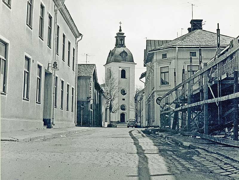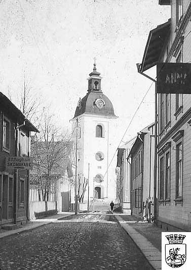 Kyrkogatan eller som den kallades förr, Lilla kyrkogatan. Går från Stora Torget ned till kyrkan.