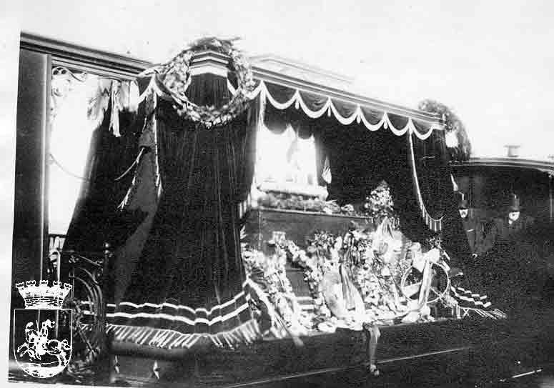 Klockan kvart i två satte sig processionen i rörelse under kyrkklockornas klang. I spetsen gick en militärmusikkår och en avdelning från Värmlands Regemente med fana, därefter följde skolungdom och Långbanshyttans arbetare och därefter kom likvagnen dragen av fyra svarta hästar. Därpå följde länets och stiftets förnämsta myndigheter, officerare, Filipstads stater och kårer, medlemmar av Brukssociteten, olika arbetareföreningar med flera. Processionen skred fram mellan täta åskådarmassor. Det uppskattades att cirka 5000 personer såg begravningståget. Filipstads folkmängd år 1890 var ungefär 3000. Husen var prydda med granrisdekorationer och blommor, det flaggades med svensk-norska unionsflaggor och amerikanska flaggor. En del byggnader var utsmyckade med svarta draperier. Den långa processionens väg till kyrkan gick längs Allégatan, Sparbanksgatan, över Hotellbron, på vilken en stor äreport var rest, över Stora Torget, Drottninggatan och fram till kyrkan.