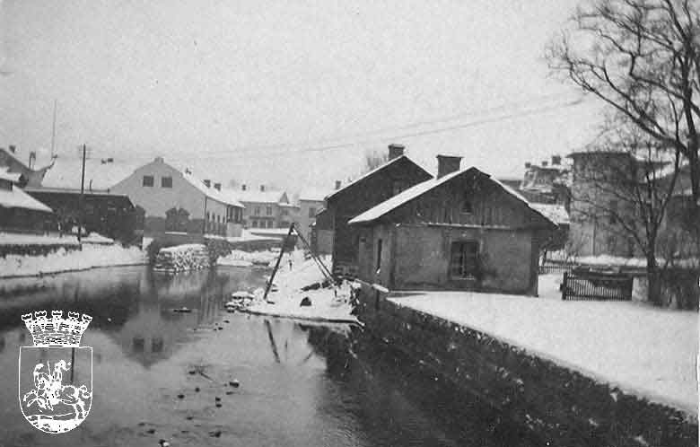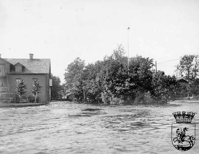 Övriga byggnader till vänster tillhör apoteksgården. Fotot är taget från stenbron av just Ölander. Bilden från Filipstads Gilles bildarkiv.