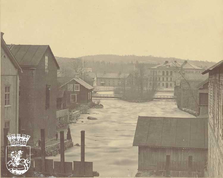 Dahlström omkring 1880 upp såg och benkvarn. I huset längre ned till vänster bodde fotograf S.J. Ölander.