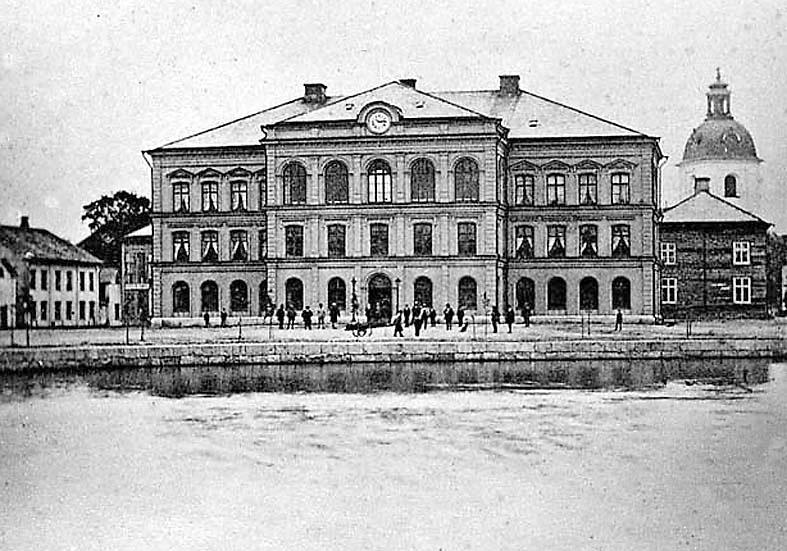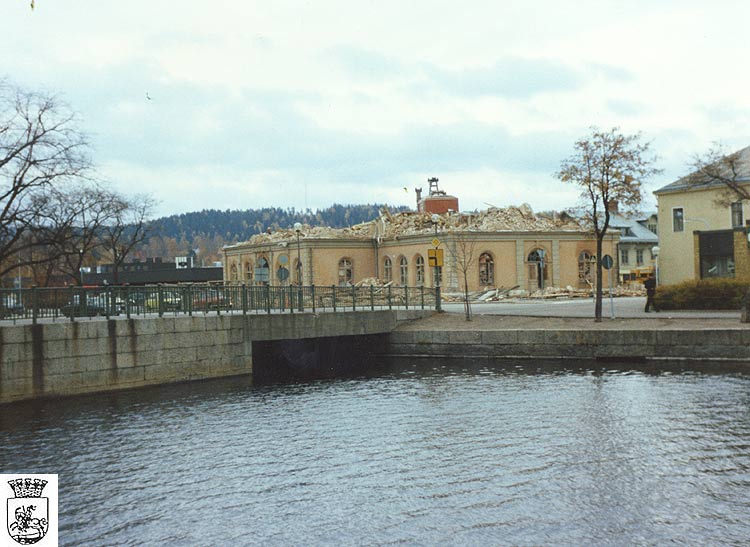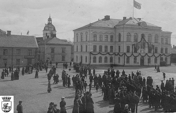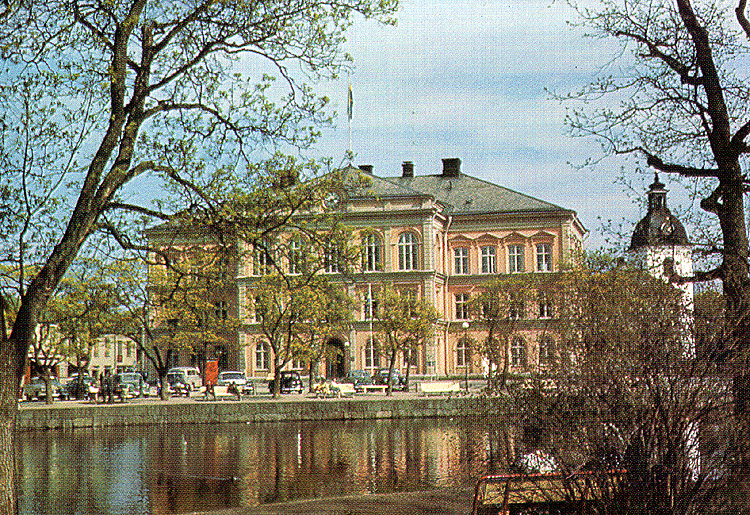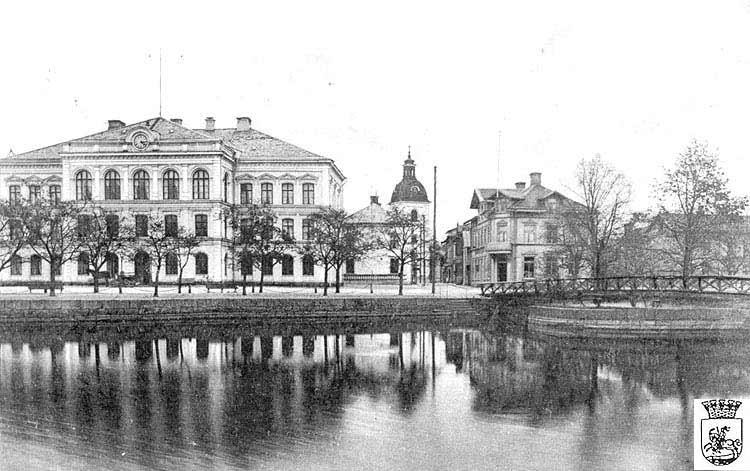 Till höger syns den Perhsonska fastigheten och till vänster annexet som inrymde Bibliotek och Systembolaget.
