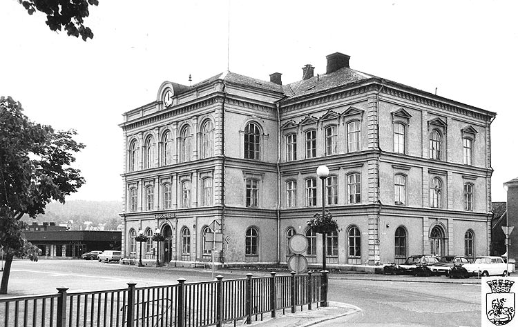 I mitten av 1850-talet växte behovet av ett nytt rådhus, och genom att det inte heller fanns något hotell som ens motsvarade dåtidens krav, beslutades det om nybyggnation av båda delarna. Kvarteret mellan Drottninggatan och Kyrkogatan inköptes. Bygget tog fart 1869 och var färdigt 1870 och hade då kostat 72.000 kr inkl. två flygelbyggnader. Själva rådhuset uppfördes i sten (förmodligen var man påmind av alla stadens bränder) I bottenvåningen fanns matsalar, cafe och kök. Andra våningen bestod av sessionssal med arkiv samt uthyrningsrum. I översta våningen fanns festsal och uthyrningsrum. Den ena flygeln bestod av personalbostad och poliskontor. I den andra flygeln huserade Systembolaget och Telegrafen.