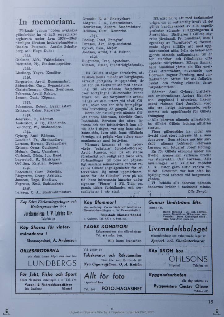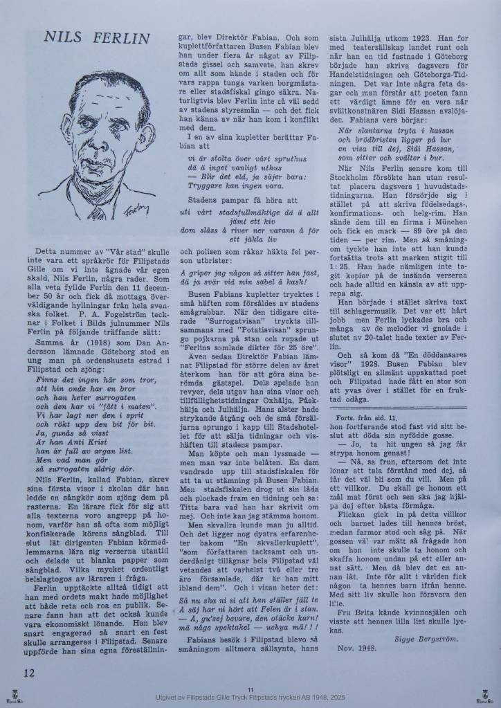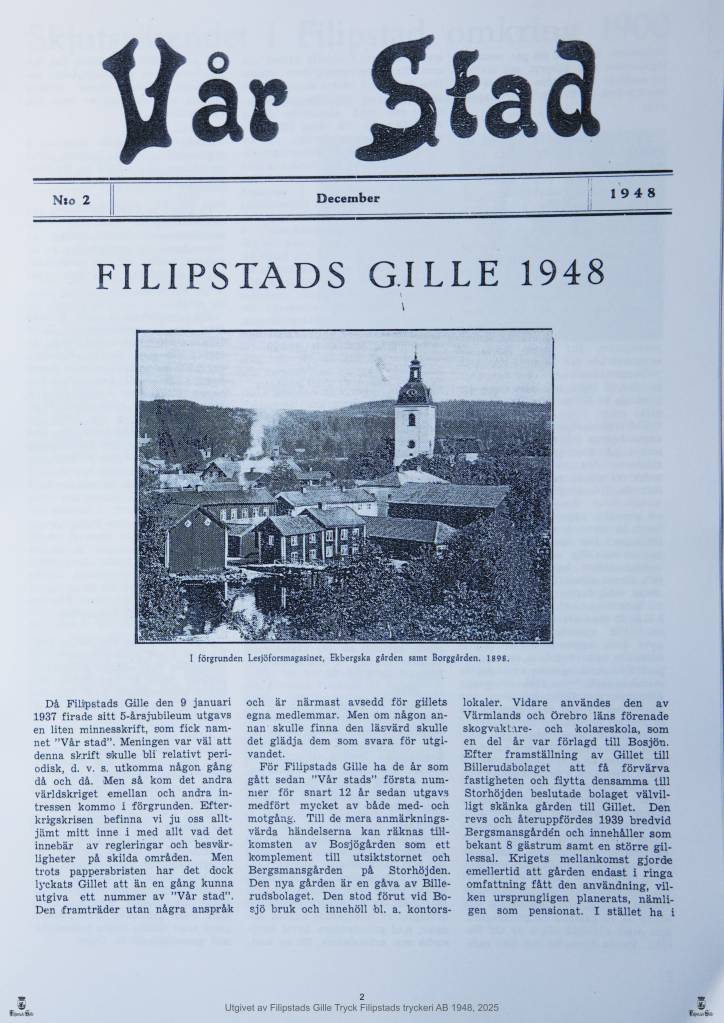 År 1948 kom den andra utgåvan av Vår stad ut. Tidningen gavs ut av föreningen Filipstads Gille och trycktes av Filipstads Tryckeri Aktiebolag i Filipstad. I det andra numret kan man bl.a. läsa om Skjutsväsendet omkring 1900, om Gustav III besök i Filipstad 1788, utdrag från Filipstads stads och bergslags domböcker 1685-1718, kända Filipstads bor där bl.a. Nils Ferlin ämnas några rader mm.